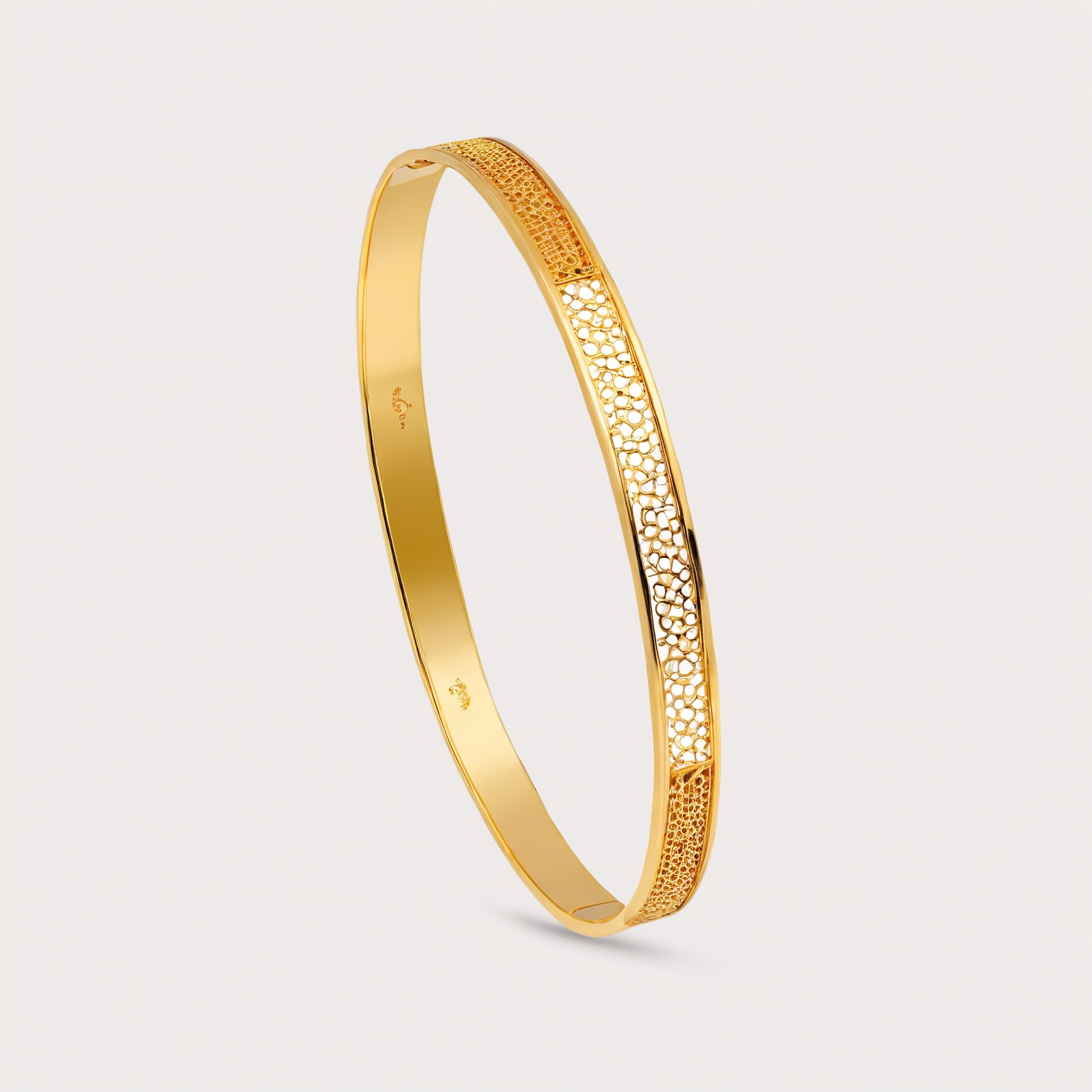 Elegant 22K gold bangle with intricate filigree design, ideal for any occasion.